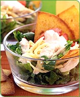 of 4 salad bowls. Place 1/4 of lettuce, chicken, tomatoes and cheese