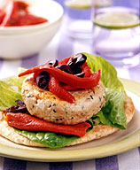 lettuce leaf, 1/4 of peppers and 1 teaspoon of olives.