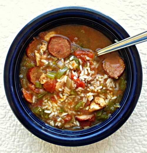individual serving of jambalaya. Store rice separately from rest of stew.
